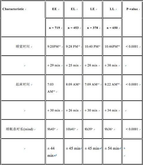 该研究把2200名9至16岁不等的青少年分为四组:早睡早起(EE),早睡晚起(EL),晚睡早起(LE),晚睡晚起(LL)。