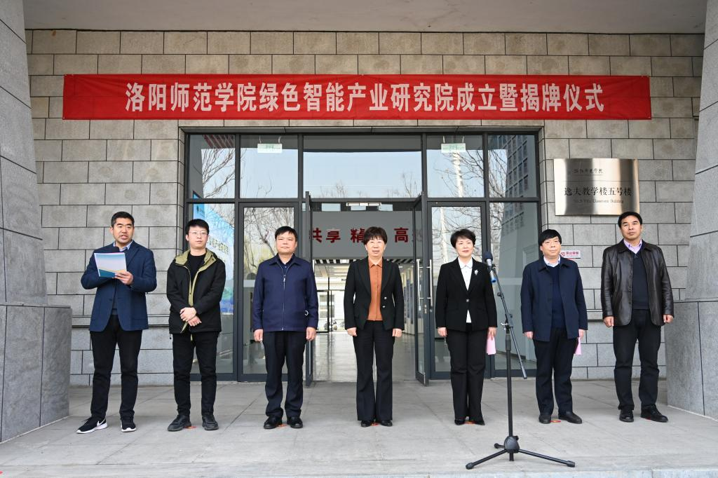 郭改英、郭海明、叶惠玲和张战伟共同为“洛阳师范学院绿色智能产业研究院”揭牌。